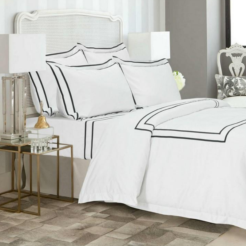 Sengetøyet er dekorert med svart ribbboner av høy kvalitet, noe som gjør at hotellet lin ser mer elegant og edelt ut. Utvalgte bånd vil ikke visne eller løsne, og kommer i mange farger. Sammen med satengstoff med høy telling og høy tetthet, og gir kundene en 5-stjerners hotellopplevelse.